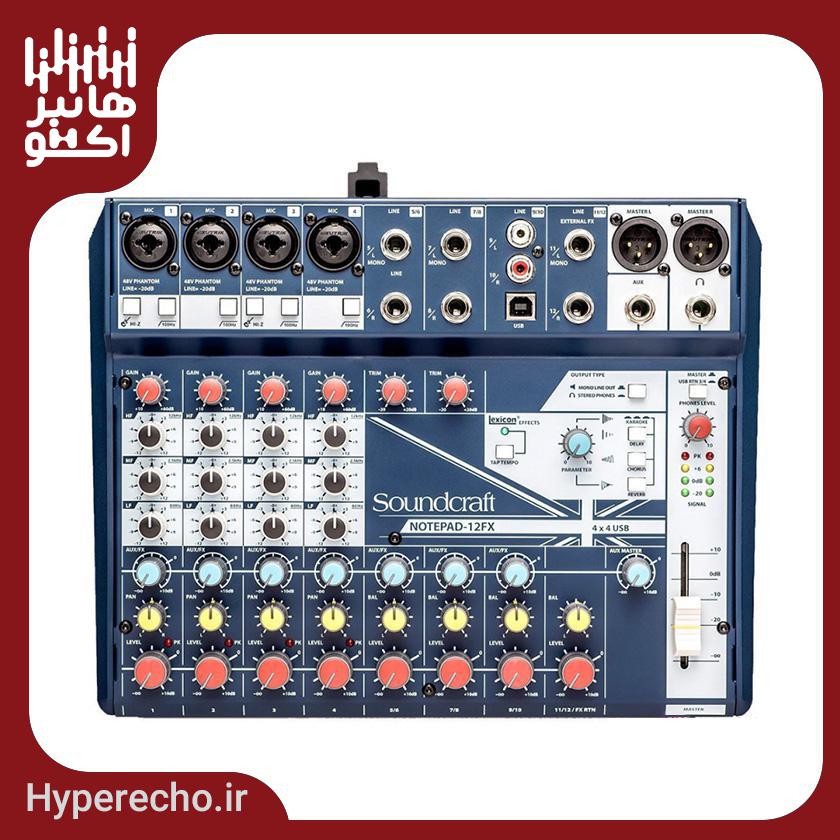 میکسر ساند کرافت مدل Soundcraft Notepad-12FX از برند محبوب ساند کرافت است. انواع میکسر ساند کرافت در بازار ایران فروش خوبی دارد و سال هاست که متخصصان صدا از این میکسرها استفاده میکنند. یکی از دلایل این استقبال، مقرون به صرفه بودن قیمت میکسر ساند کرافت است. میکسرها یکی از اجزای اصلی سیستم های صوتی هستند و کیفیت خروجی آنها تاثیر زیادی در یک ضبط یا اجرای بینقص دارد. ما امروز در این مطلب قصد داریم درباره میکسر ساند کرافت مدل Soundcraft Notepad-12FX صحبت کنیم و به بیان ویژگیهای آن بپردازیم. با ما همراه باشید تا درباره این میکسر صدای کوچک ساند کرافت اطلاعات جامعی به دست آورید. آگاهی از تمامی مشخصات محصول باعث میشود انتخاب آسانتر صورت بگیرد. شما میتوانید این محصول را از هایپر اکو با بهترین قیمت بازار تهیه کنید. برای اطلاعات بیشتر از این محصول به بخش مشخصات مراجعه کنید. سایر محصولات برند ساند کرافت در سایت هایپر اکو قابل مشاهده میباشد.