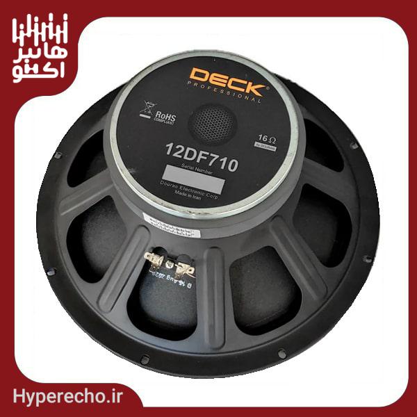 بلندگو خام DECK مدل 12DF710 دارای سایز ووفر 12 اینچی و توان خروجی 340 واتی دارای 16 اهم آمپدانس و کیفیت فوق العاده بالا میباشد. به صورت کلی محصولات برند DECK، از کیفیت بالایی برخوردار است.